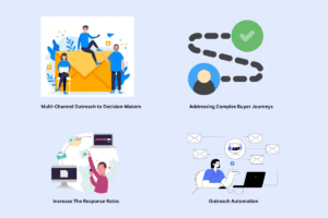 • Email: Short, personalized, pain-point focused, 3 to 5 touch sequence