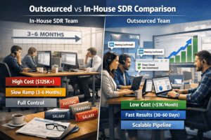• In-house SDRs take 3 to 6 months to reach full productivity. Outsourced teams deliver qualified meetings in 30 to 60 days.